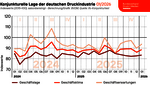 Das BVDM-Konjunkturtelegramm beschreibt die monatliche Entwicklung der deutschen Druckindustrie anhand von zwei Stimmungsindikatoren, nämlich der aktuellen Geschäftslage und der Geschäftslage in sechs Monaten. Außerdem wird auf die Entwicklung des Geschäftsklimas eingegangen, das anhand der beiden erstgenannten Indikatoren berechnet wird.