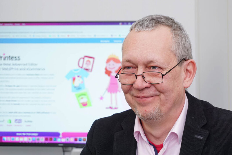 Hinter Printess stecken 20 Jahre Erfahrung, was Kunden im Bereich Personalisierung brauchen. Wir wissen, dass heute keine monolithischen Produkte mehr gefragt sind. Also kein Rundum-Komplettpaket, bestehend aus MIS, Shopsystem und Personalisierungsmöglichkeit. Wir haben gelernt, dass allein die Personalisierung eine so große Aufgabe ist, dass man damit bequem eine Firma gründen kann. Und so ist Printess entstanden. Die Herausforderungen kannten wir bereits, zum Beispiel Mobile Friendliness oder Skalierbarkeit. Ein Beispiel: Viele Produkte sind Saisonartikel. Nehmen wir einen Adventskalender. Der wird binnen weniger Wochen am Jahresende verkauft, dann aber möglicherweise in großen Stückzahlen. Unsere Lösung kann das, weil sie Cloud-native ist. Auf dieser Grundlage ist es egal, ob ein Kunde zehn Produkte am Tag verkauft oder zehn Millionen. Das macht uns einzigartig.