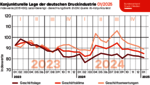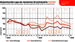 Im Januar 2025 bewerteten die vom ifo Institut befragten Entscheider der Druck- und Medienunternehmen ihre aktuelle Geschäftslage schlechter als noch im Vormonat. Auch die Einschätzungen im Hinblick auf die nächsten 6 Monate fielen pessimistischer aus. Die Ausprägungen der aktuellen und erwarteten Geschäftslage bestimmen die Entwicklung des Geschäftsklimas, das einen guten Vorlauf-indikator für die Produktionsentwicklung der Druck- und Medienindustrie darstellt.
