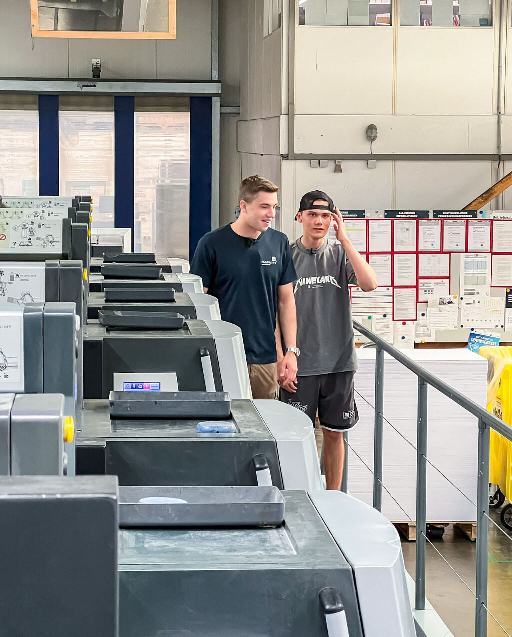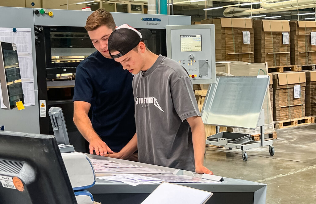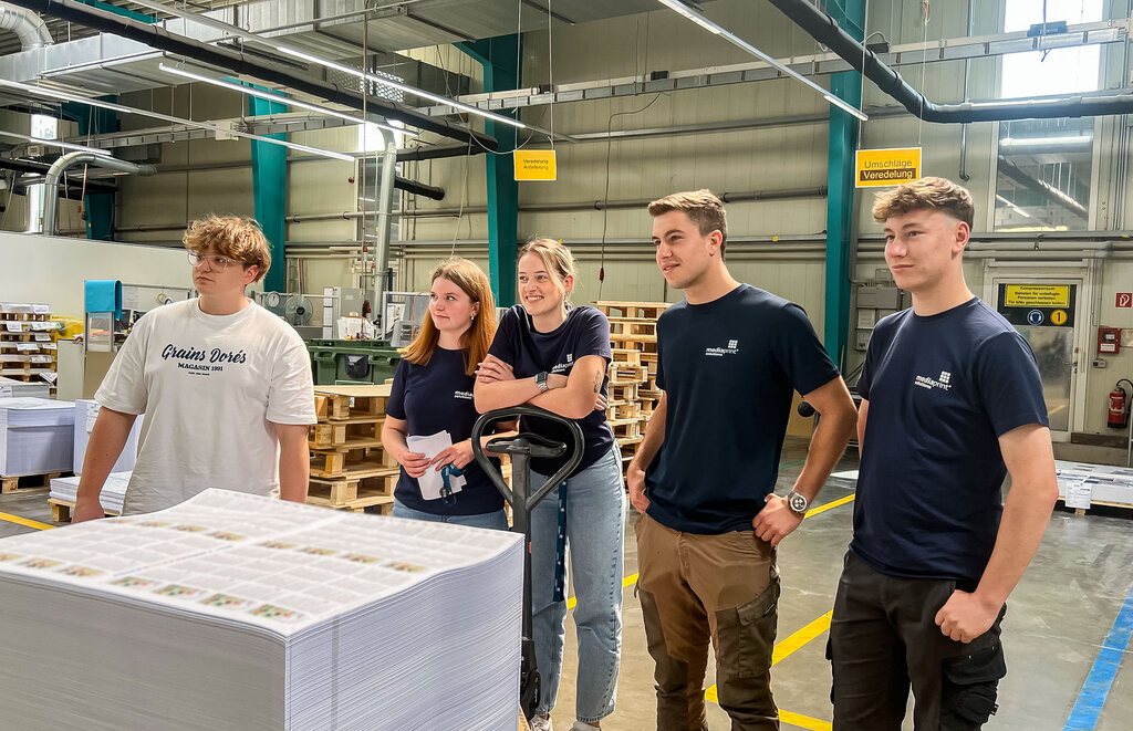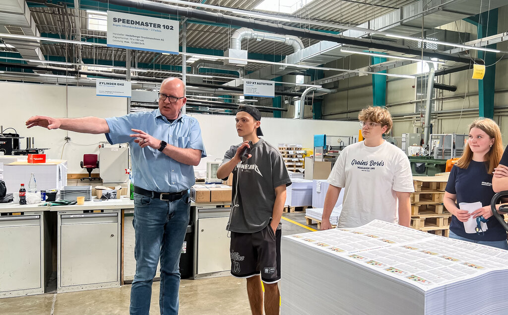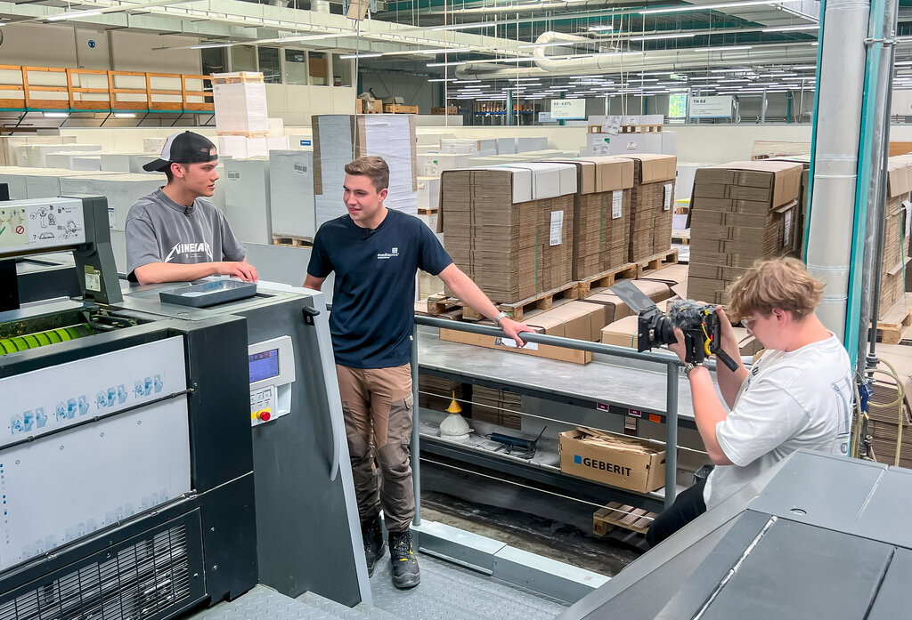 Seit Anfang April läuft die breit angelegte Social-Media-Kampagne, deren zentrales Element ein interaktives Berufsquiz ist. Wer mitmacht, wird von den Verbänden kontaktiert. So entstehen qualifizierte Leads – also echte Kontakte mit Ausbildungsinteresse. Ein besonderer Impuls kam Anfang Juni hinzu: Der reichweitenstarke Content Creator Noel Dederichs hat einen Tag in einer Druckerei verbracht und daraus ein Video gemacht. Darin zeigt er seinen Arbeitstag bei der mediaprint solutions GmbH in Paderborn – einem top-modernen Produktionsbetrieb, der das Thema Ausbildung ernst nimmt. Er lässt sich von Auszubildenden die Maschinen erklären und darf selbst mit anpacken. Seine Message: Der Beruf des Medientechnologen ist spannend, vielseitig – und es gibt noch viele freie Ausbildungsplätze.