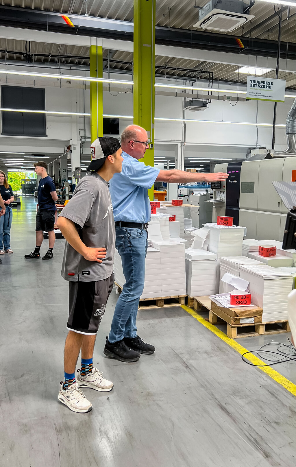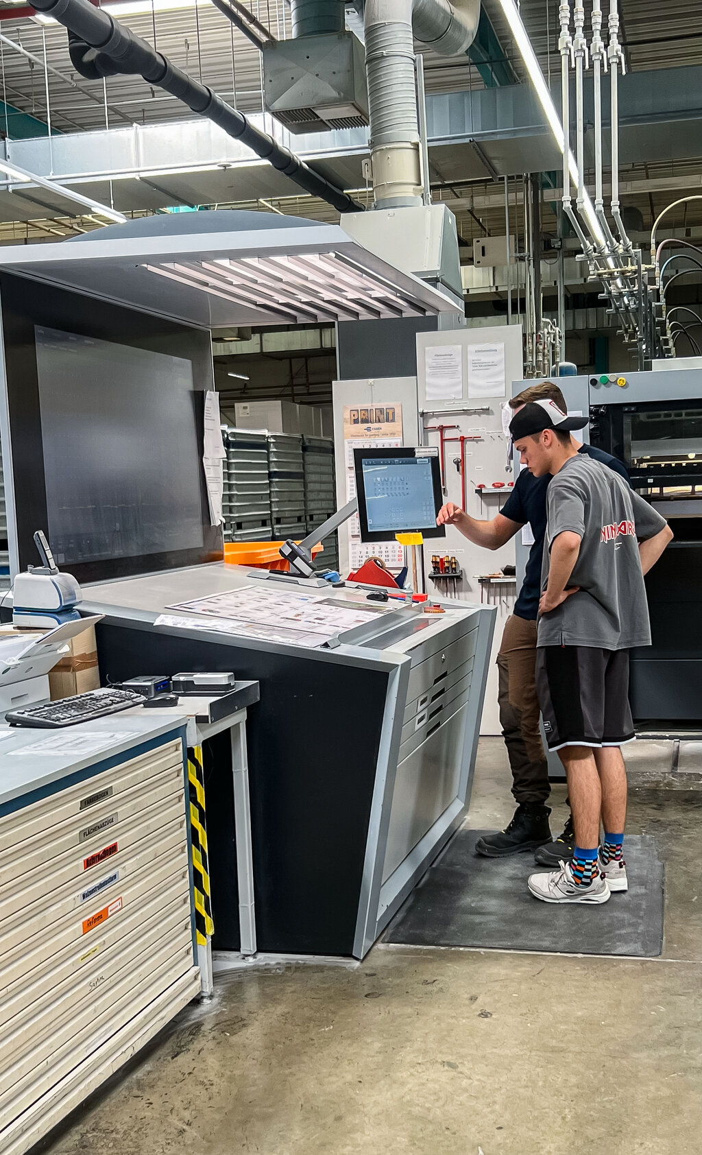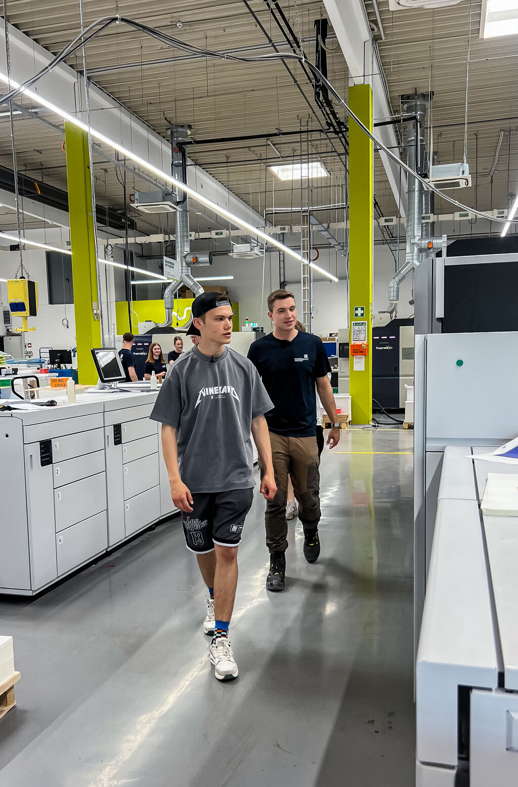 Seit Anfang April läuft die breit angelegte Social-Media-Kampagne, deren zentrales Element ein interaktives Berufsquiz ist. Wer mitmacht, wird von den Verbänden kontaktiert. So entstehen qualifizierte Leads – also echte Kontakte mit Ausbildungsinteresse. Ein besonderer Impuls kam Anfang Juni hinzu: Der reichweitenstarke Content Creator Noel Dederichs hat einen Tag in einer Druckerei verbracht und daraus ein Video gemacht. Darin zeigt er seinen Arbeitstag bei der mediaprint solutions GmbH in Paderborn – einem top-modernen Produktionsbetrieb, der das Thema Ausbildung ernst nimmt. Er lässt sich von Auszubildenden die Maschinen erklären und darf selbst mit anpacken. Seine Message: Der Beruf des Medientechnologen ist spannend, vielseitig – und es gibt noch viele freie Ausbildungsplätze.