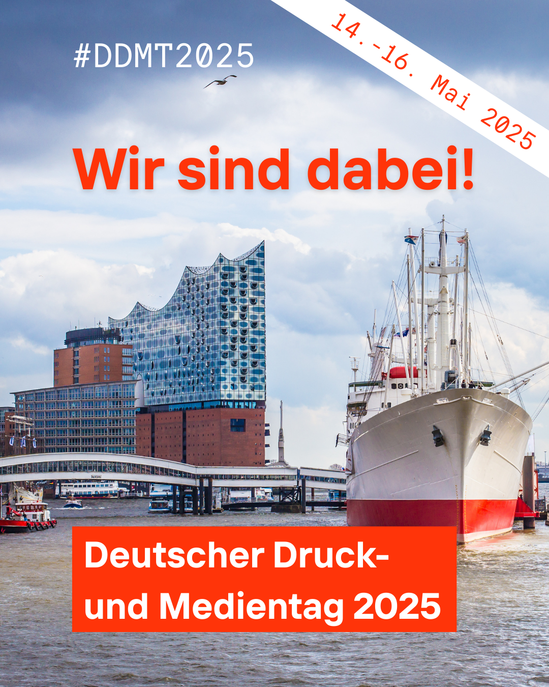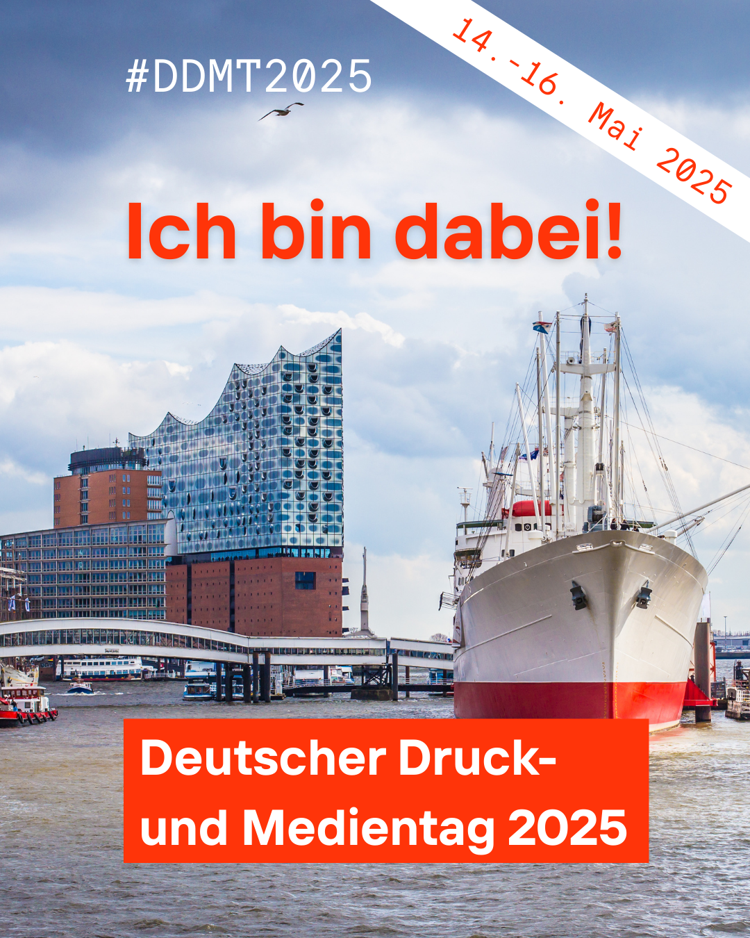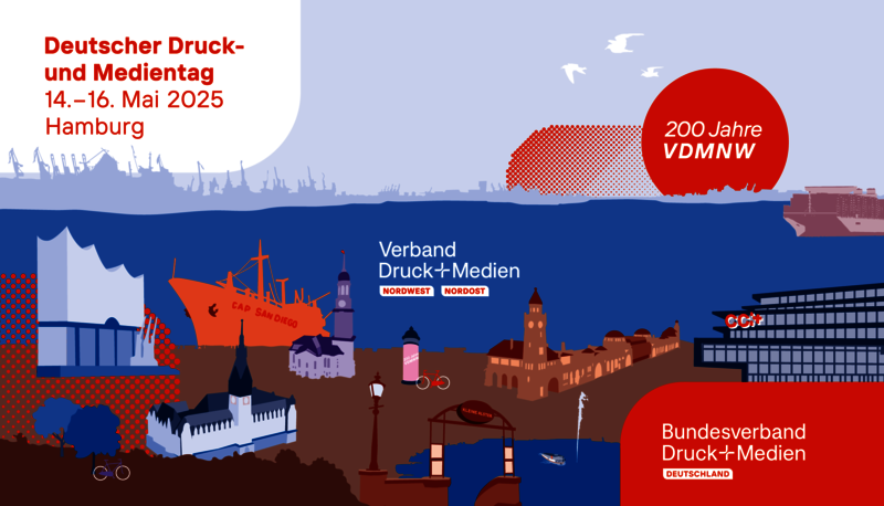 Der Countdown läuft: Vom 14.-16. Mai findet der Deutsche Druck- und Medientag 2025 in Hamburg statt. Der Bundesverband Druck und Medien e.V. sowie die Landesverbände Nord-West und NordOst haben sich zusammengeschlossen, um unter dem Motto „Gemeinsam auf Kurs“ das wichtigste Branchenevent des Jahres auszurichten und das 200-jährige Jubiläum des VDMNW zu feiern. Teilen Sie Ihre Vorfreude in den sozialen Medien!