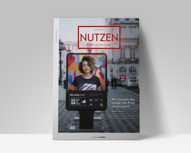Das vierteljährlich erscheinende Mitgliedermagazin NUTZEN ist vollgepackt mit informativen Brancheninsights. Von erfolgreichen Projekten über spannende technologische Entwicklungen bis hin zu Porträts inspirierender Persönlichkeiten. Heute frisch erschienen: Die Ausgabe III/2024 mit der Titelstory „Wir müssen das Image von Print verbessern!“.