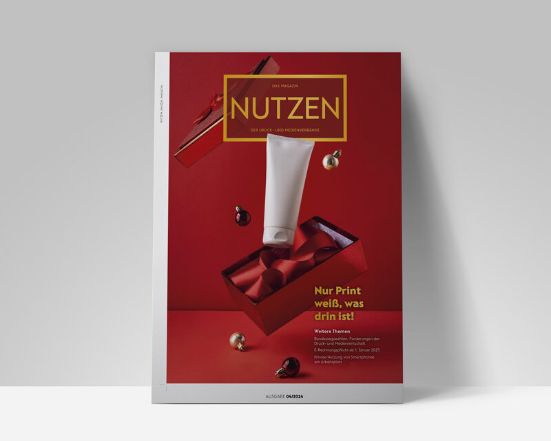 Das vierteljährlich erscheinende Mitgliedermagazin NUTZEN ist vollgepackt mit informativen Brancheninsights. Von erfolgreichen Projekten über spannende technologische Entwicklungen bis hin zu Porträts inspirierender Persönlichkeiten. Heute frisch erschienen: Die Ausgabe IV/2024 mit der Titelstory „Nur Print weiß, was drin ist!“.