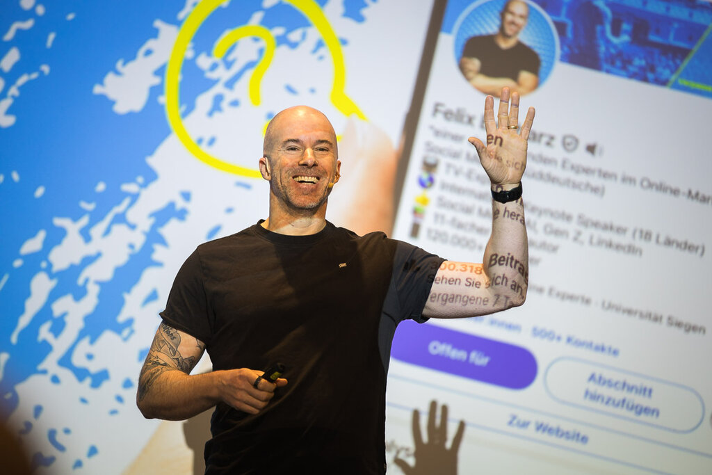 Felix Beilharz, Digital-Marketing-Experte, machte deutlich: Im B2B-Vertrieb führt an LinkedIn kein Weg vorbei. Schon wenige, klar geplante Posts können große Reichweite erzielen. Sein Rat: „LinkedIn ist ein Marathon – aber wer heute startet, sichert sich den Vorsprung von morgen.“ Für ein Highlight sorgte er mit einer Konfettikanone, die natürlich sofort den Weg in seinen LinkedIn-Feed fand.