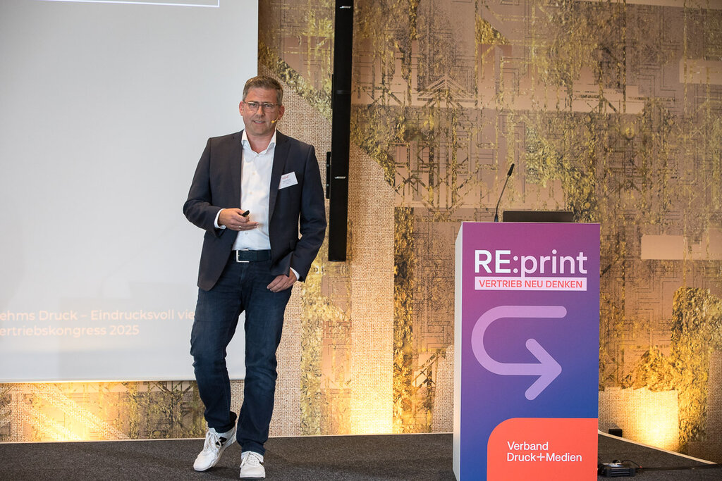 Düsseldorf, 12. September 2025 – Vertriebsverantwortliche aus der Druck- und Medienbranche kamen im Van der Valk Airporthotel Düsseldorf zum 10. Vertriebskongress der Verbände Druck und Medien zusammen. Unter dem Motto „RE:print – Vertrieb neu denken“ drehte sich alles um die Frage: Wie gelingt Vertrieb im Wandel von Digitalisierung, neuen Konsumgewohnheiten und wachsendem Wettbewerbsdruck?