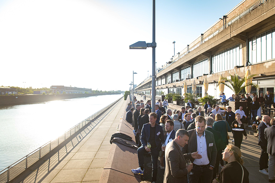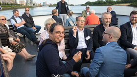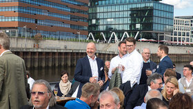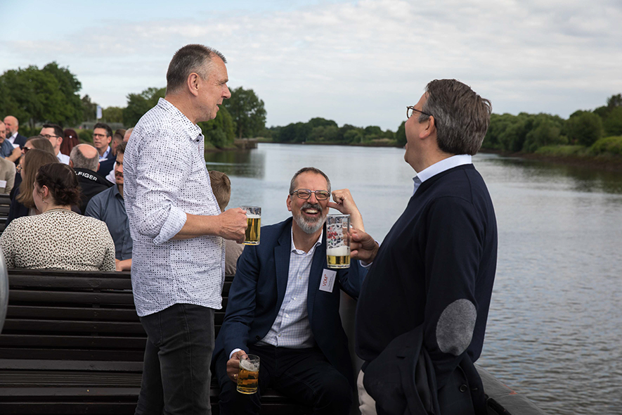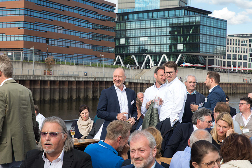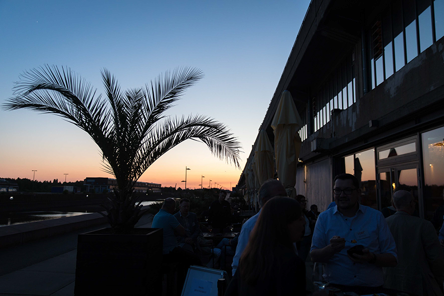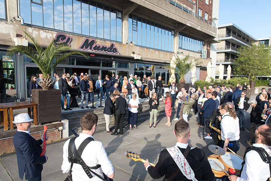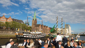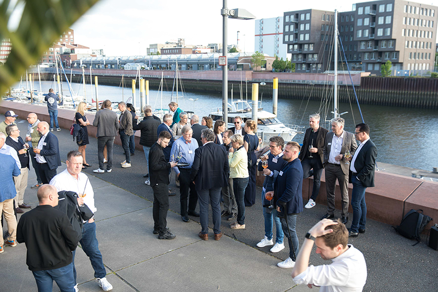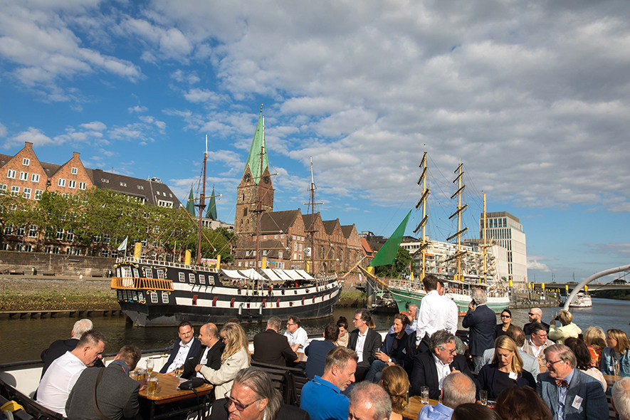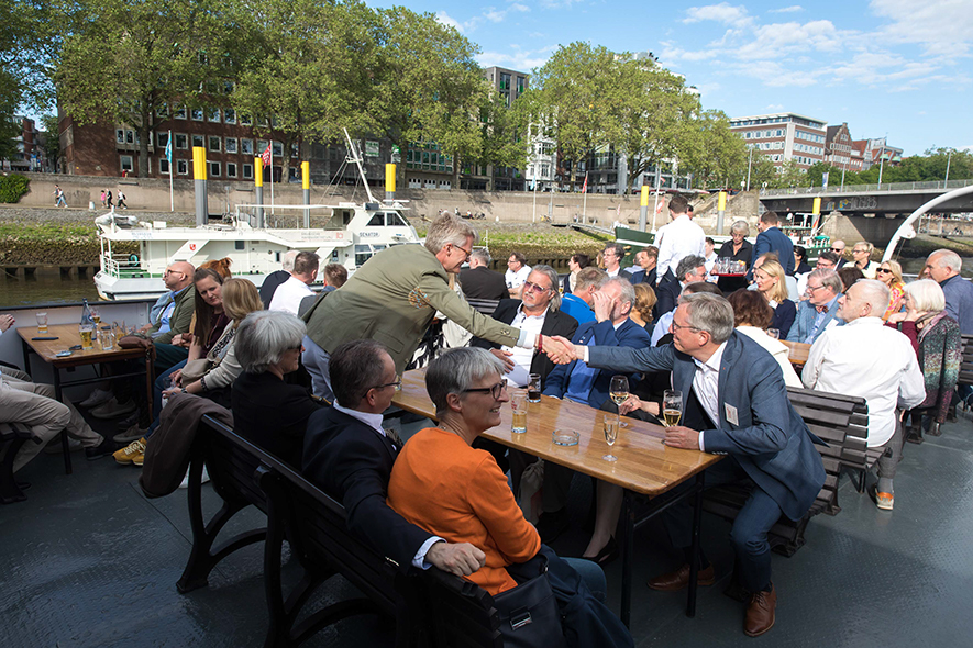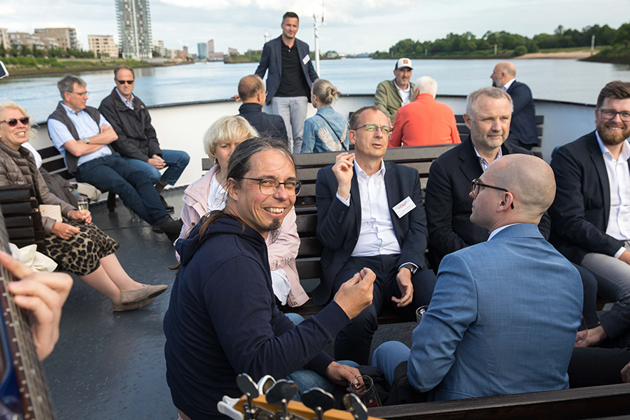 Im Anschluss an die Keynote erwartete die Teilnehmenden ein ganz besonderes Erlebnis: Eine Schifffahrt auf der Weser vom Weserstadion zum Europahafen mit Live-Musik der mobilen Band Dixieland-Band „combocombo“. Während der Fahrt genossen die Teilnehmerinnen und Teilnehmer nicht nur die Unterhaltung und den Blick auf die Bremer Stadtsilhouette, sondern auch die Möglichkeit zum Networking in entspannter Atmosphäre. Zum Ausklang des Abends brachte das Schiff die Gäste in das exklusive Restaurant El Mundo. Nach dem Dinner wurde die Indoor-Fläche zum Dancefloor umfunktioniert – mit reger Beteiligung.