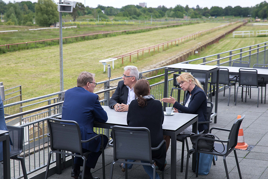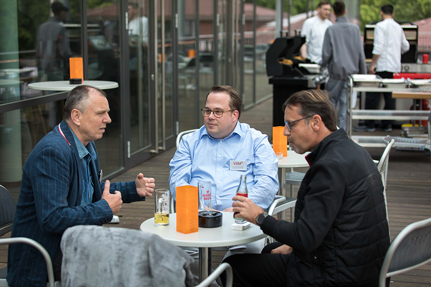So oft die Druckindustrie auch totgesagt wird: Das Netzwerktreffen in Bremen hat einmal mehr gezeigt, dass die Branche lebt. Auch im digitalen Zeitalter wird die Druckindustrie eine wichtige Rolle spielen - ein hoher Organisationsgrad, Innovationskraft und Mut zur Veränderung vorausgesetzt. So nutzten rund 200 Unternehmerinnen und Unternehmer die Gelegenheit, sich in Bremen mit Gleichgesinnten auszutauschen, Netzwerke auszubauen und sich inspirieren zu lassen. Die erste Gelegenheit dazu bot das Get-together und Barbecue im ehemaligen VIP-Bereich der geschichtsträchtigen Galopprennbahn am Donnerstagabend.