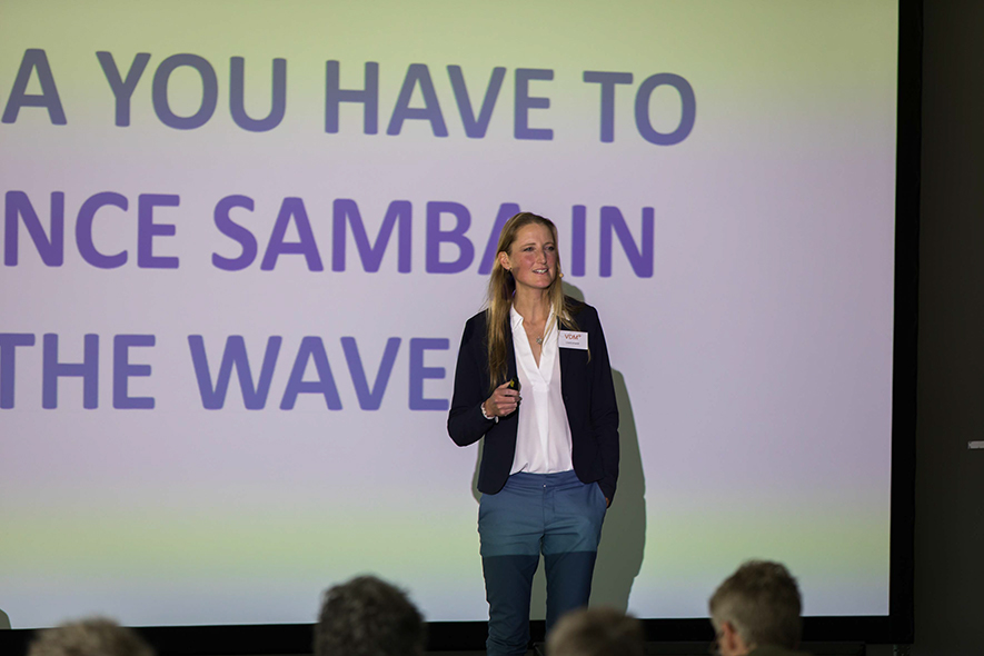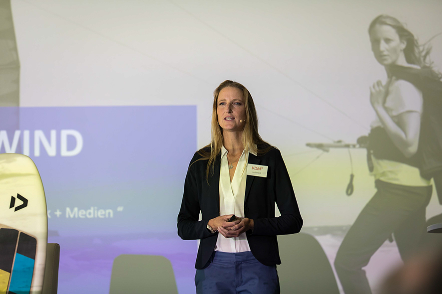Nach den Mitgliederversammlungen folgte die inspirierende Keynote von Lisa Eckhardt - Managerin, Leadership Coach und leidenschaftliche Kitesurferin. Die im wahrsten Sinne des Wortes sturmerprobte Krisenmanagerin zog faszinierende Parallelen zwischen Management und ihrer Leidenschaft, dem Kitesurfen. Eckhardt: „Jedesmal, wenn ihr euch für neue Themen öffnen müsst, tanzt Samba mit den Wellen.“ Ihre persönlichen Erfahrungen inspirierten dazu, den eigenen Umgang mit Veränderungsdruck zu hinterfragen.