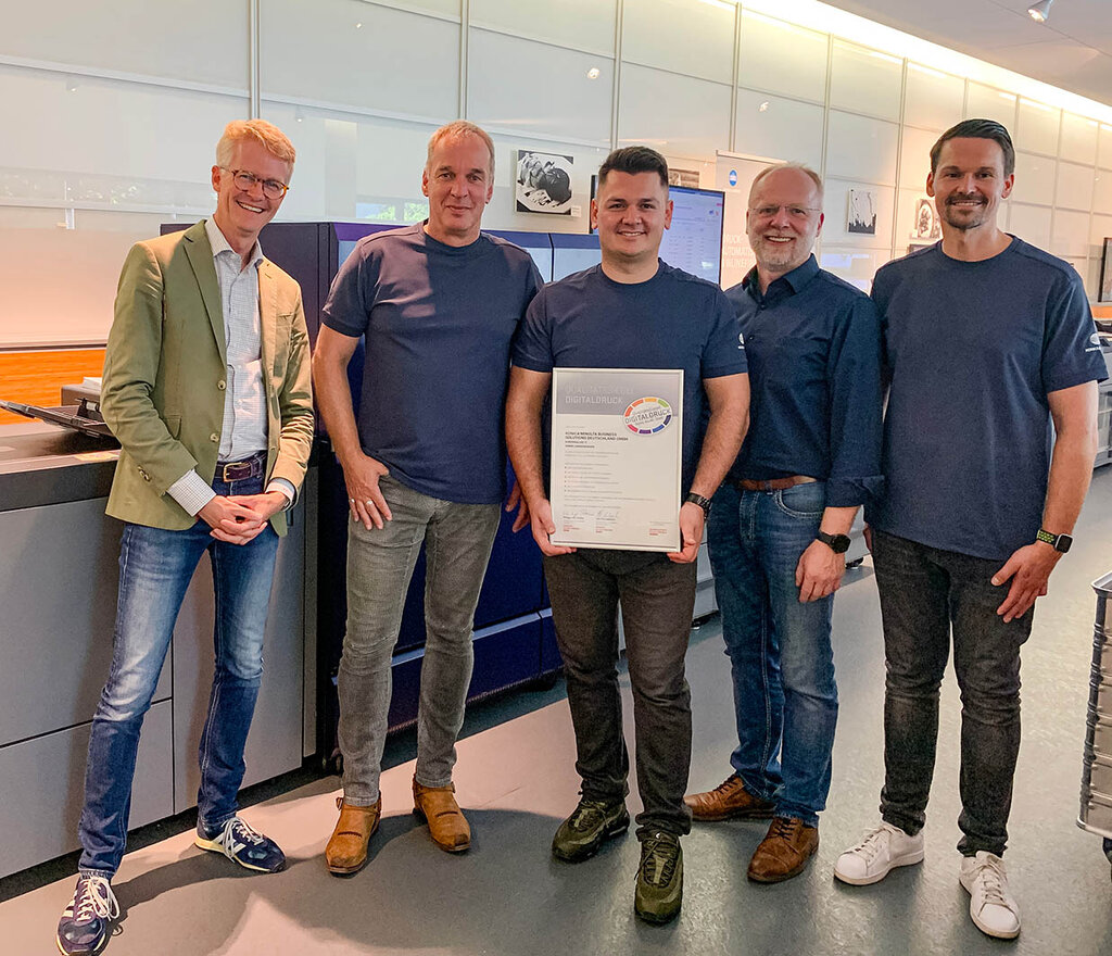 Thematisiert wurden u.a. die Automatisierung im Digitaldruck mit der Inline Print Production – egal ob für den randlos gerillten 6- oder 8-Seiter, die Broschüre oder für individuelle Kartenformate. Außerdem: Auffällige Effekte mit digitaler Druckveredelung, Dashboard-basierende Systemanalyse oder zukunftsorientierter Etikettendruck.