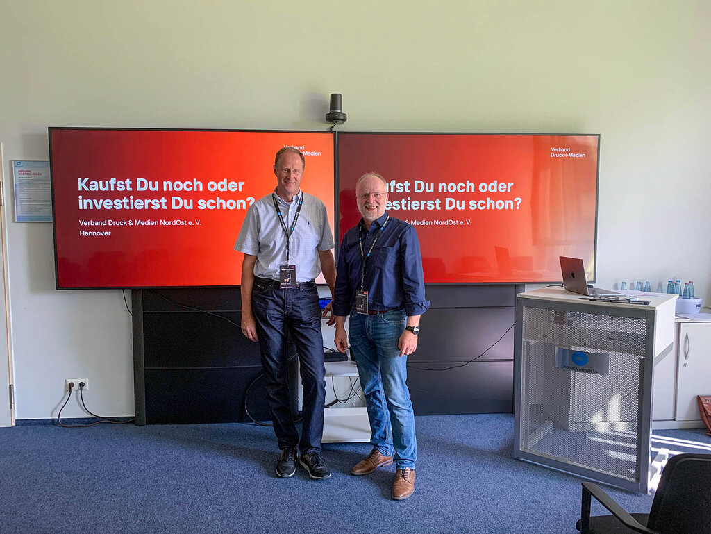 Zahlreiche Vorträge rundeten das Programm ab. Holger Schürmann vom VDMNO und Udo Eickelpasch von der Verband Druck und Medien Beratung GmbH steuerte Vortrag "Kaufst Du noch oder investierst Du schon?" bei. Philipp von Trotha, Geschäftsführer des VDMNO, bereicherte zusammen mit Thorsten Kinnen (Konica Minolta), Rüdiger Maaß (Fachverband Medienproduktioner e. V.) und Christian Meier (Phoenix Verlag für Grafikdesign/Grafikmagazin) die Podiumsdiskussion und sprach über die Zukunft der Druckindustrie. Ist das Ende des Prospekts gekommen? Wie nachhaltig ist Print? Wie bewältigen wir den Fachkräftemangel und die digitale Transformation im Printbereich?