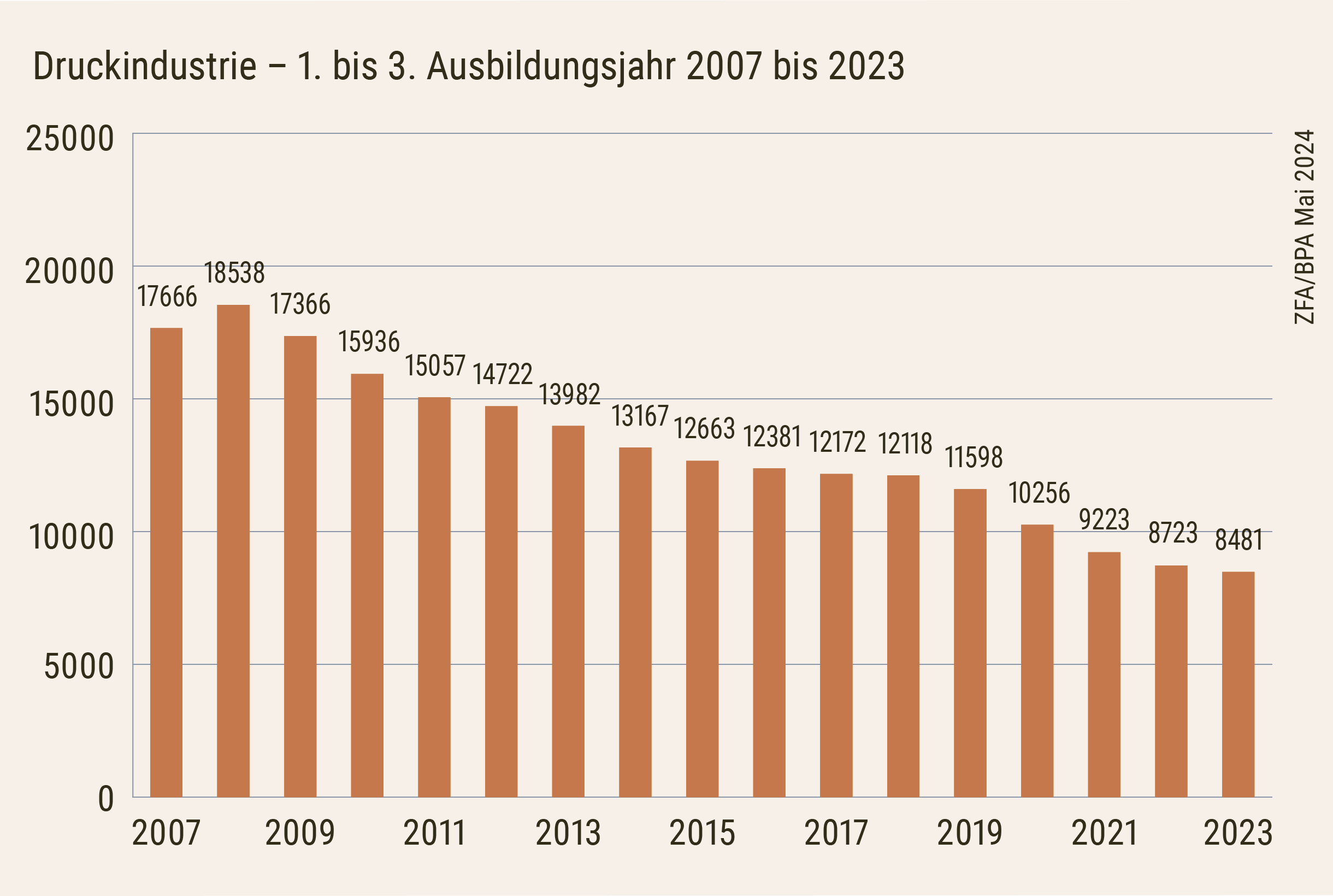 Damit befinden sich aktuell 8.481 Jugendliche in einer Ausbildung in einem Druck- und Medienberuf, 2,8 Prozent weniger als im Vorjahr.