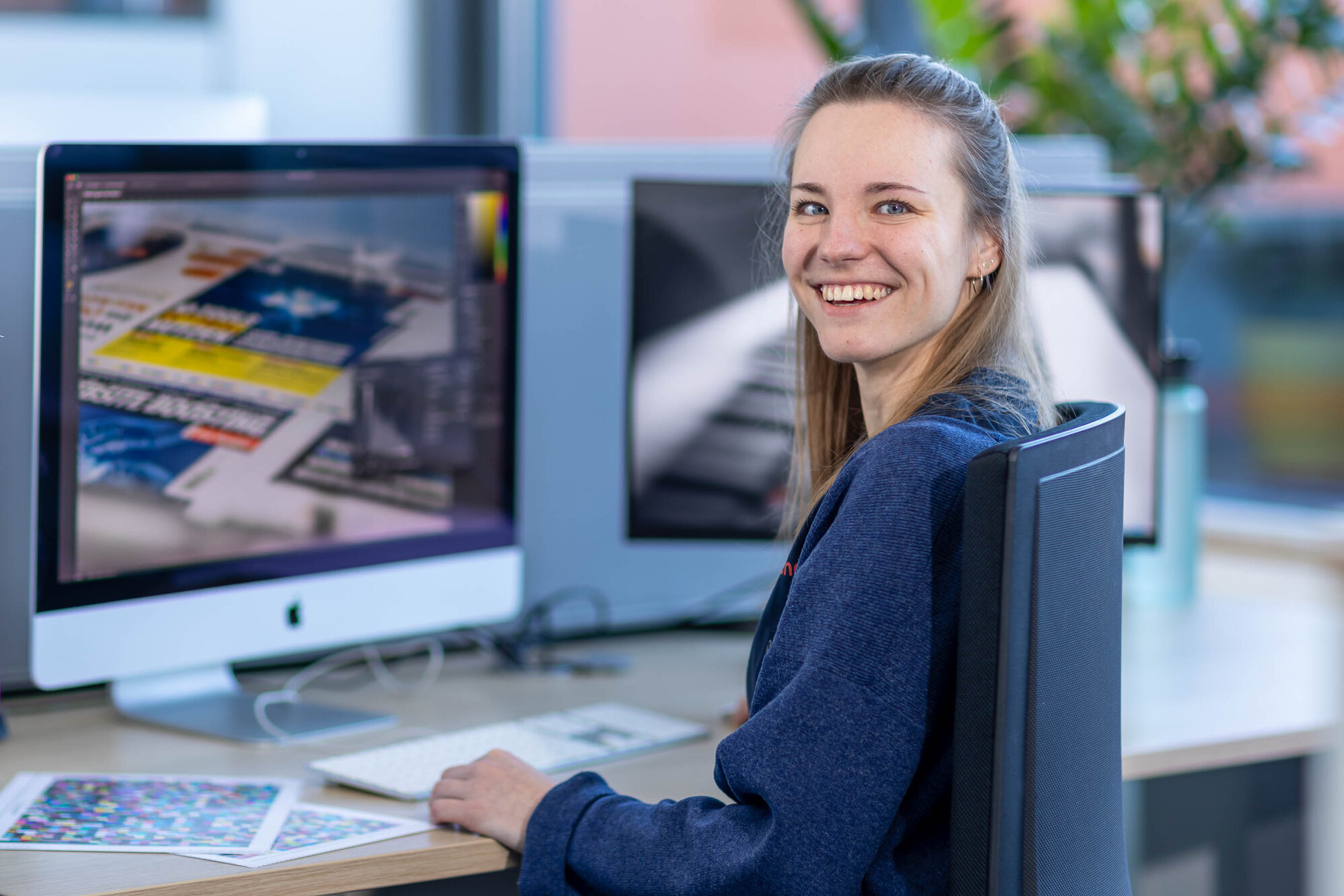 Mediengestalter/-innen bringen Texte, Bilder und Grafiken oder auch Videos und Sounds für Print- oder Digitalmedien professionell in Form. Sie arbeiten beispielsweise in Druck- und Medienunternehmen, Medienagenturen, Verlagen, Marketing-Abteilungen oder Softwarehäusern.