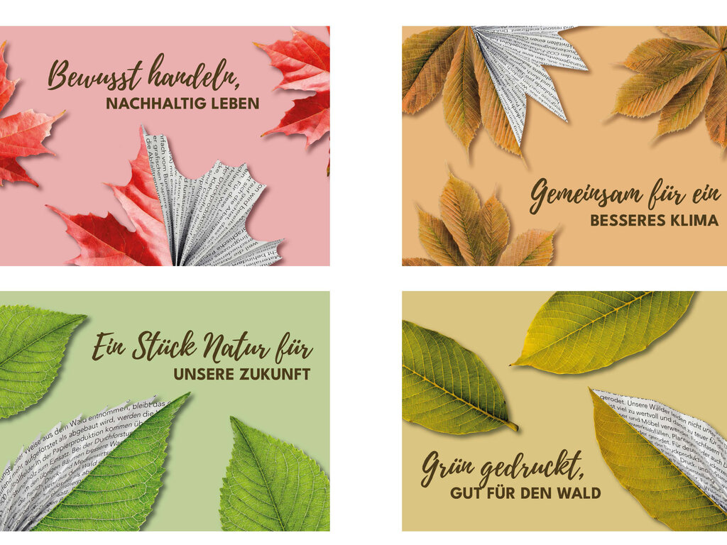 Druck: 4/1-farbig optional plus Veredelung, 280 g/m² einseitig gestrichener Zellstoffkarton
