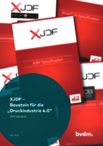Der bvdm engagiert sich als Mitglied im CIP4-Konsortium für die Automatisierung der Prozesse in der Druckindustrie: Der von CIP4 erarbeitete JDF-Nachfolger XJDF ist der kommende Industriestandard der „Druckindustrie 4.0“. Sein Hauptvorteil: Systeme unterschiedlicher Hersteller kommunizieren per XJDF uneingeschränkt (weil dialektfrei) miteinander, und zwar in Echtzeit.