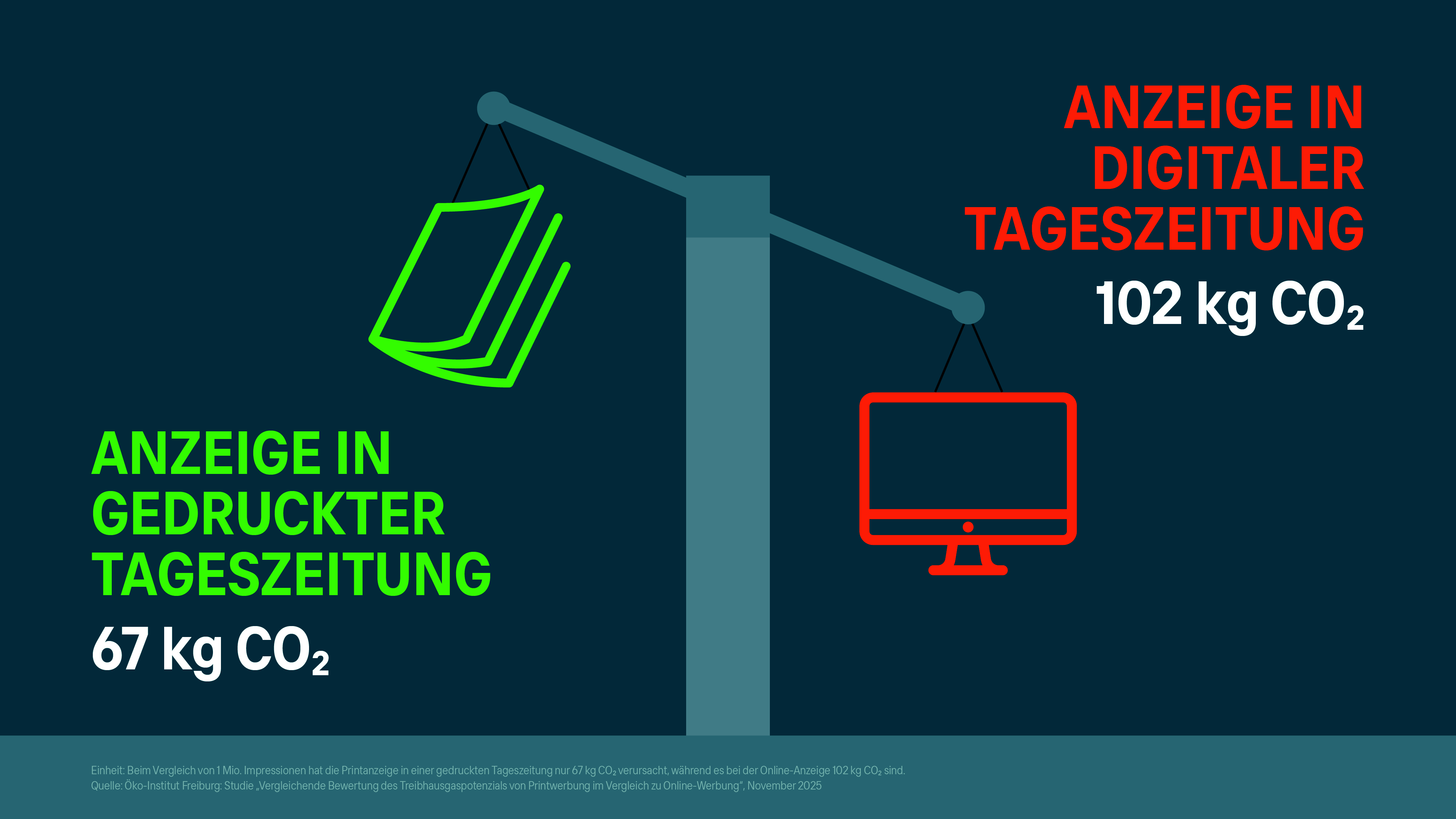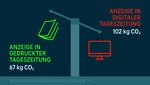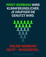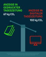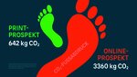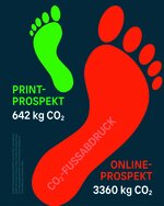 Bezogen auf eine Millionen Impressionen haben gedruckte Werbeprospekte mit 642 kg CO₂-Emissionen einen fünfmal geringeren Fußabdruck als Online-Prospekte im PDF-Format. Bei Anzeigen in Tageszeitungen ist der Unterschied zwar geringer, doch auch hier weißt die gedruckte Variante einen Umweltvorteil auf: Print-Anzeigen verursachen nur 67 kg CO₂, Online-Werbebanner hingegen 102 kg CO₂.
