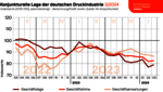 Im März 2024 bewerteten die vom ifo Institut befragten Entscheider der Druck- und Medienunternehmen ihre aktuelle Geschäftslage etwas besser als noch im Vormonat. Die Einschätzung der Entwicklung in den kommenden Monaten sank hingegen leicht ab. Die Ausprägungen der aktuellen und erwarteten Geschäftslage bestimmen die Entwicklung des Geschäftsklimas, das einen guten Vorlaufindikator für die Produktionsentwicklung der Druck- und Medienindustrie darstellt.
