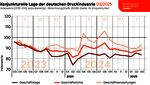Im März 2025 bewerteten die vom ifo Institut befragten Entscheider der Druck- und Medienunternehmen ihre aktuelle Geschäftslage etwas schlechter als noch im Vormonat. Die Einschätzungen im Hinblick auf die nächsten 6 Monate fielen dagegen positiver aus als im Februar. Die Ausprägungen der aktuellen und erwarteten Geschäftslage bestimmen die Entwicklung des Geschäftsklimas, das einen guten Vorlaufindikator für die Produktionsentwicklung der Druck- und Medienindustrie darstellt.