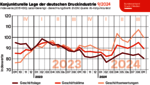 Im September 2024 bewerteten die vom ifo Institut befragten Entscheider der Druck- und Medienunternehmen ihre aktuelle Geschäftslage etwas schlechter als im Vormonat. In Bezug auf die Geschäftserwartungen für die kommenden sechs Monate zeigt sich bei den befragten Unternehmenslenkern eine pessimistischere Einschätzung im Vergleich zum Vormonat. Die Ausprägungen der aktuellen und erwarteten Geschäftslage bestimmen die Entwicklung des Geschäftsklimas, das einen guten Vorlaufindikator für die Produktionsentwicklung der Druck- und Medienwirtschaft darstellt.