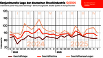 Die Geschäftserwartungen der Unternehmen der Druck- und Medienindustrie für die kommenden sechs Monate haben sich im Dezember 2025 erstmals seit 3 Monaten wieder verschlechtert. Der saisonbereinigte Index der Geschäftserwartungen fiel gegenüber dem Vormonat deutlich um 7,4 Prozent auf 90,1 Punkte. Damit liegt der Wert 3,7 Prozent unter dem Niveau des Vorjahresmonats. Nur 5 Prozent der befragten Unternehmen erwarten eine Verbesserung der Geschäftslage, während 44 Prozent von einer Verschlechterung ausgehen. 51 Prozent der befragten Unternehmen gehen von einer gleichbleibenden Geschäftsentwicklung in den nächsten 6 Monaten aus. Der daraus resultierende saisonbereinigte Saldo von -26 Prozentpunkten stellt eine deutliche Verschlechterung gegenüber dem Vormonat dar, als der Wert noch bei -12 Prozentpunkten lag.