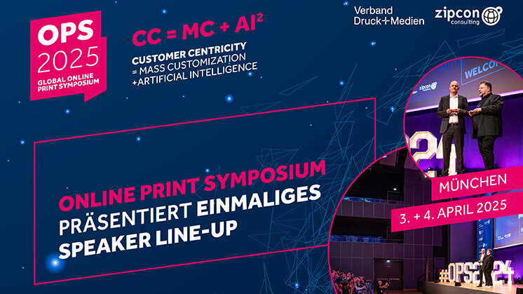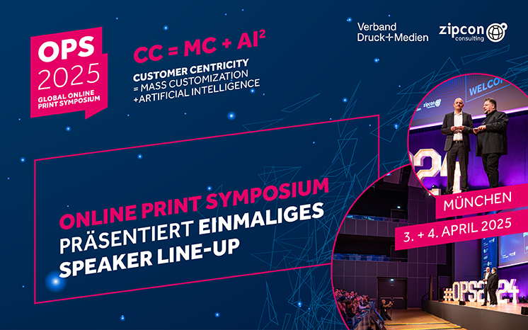 Wie in jedem Jahr setzt das Online Print Symposium 2025 neue Maßstäbe und zeigt, wie Unternehmen die Zukunft des Onlineprints aktiv mitgestalten können. Alle bereits verkündeten Keynote-Speaker, Referenten und Referentinnen finden Sie auf der OPS-Website: Programm - Online Print Symposium 2025.