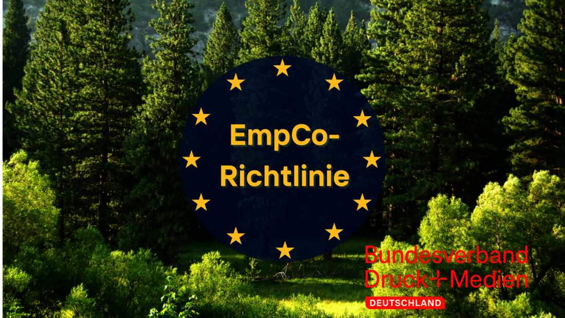 Die bevorstehende Umsetzung der europäischen EmpCo-Richtlinie („Empowering Consumers for the Green Transition“) bringt neue regulatorische Anforderungen für Umweltwerbung in der EU mit sich. Ab September 2026 sollen Umweltaussagen gegenüber Verbraucherinnen und Verbrauchern unionsweit einheitlich geregelt werden. Die deutsche Umsetzung erfolgt über Änderungen im Gesetz gegen den unlauteren Wettbewerb (UWG). Der Bundesverband Druck und Medien e. V. (BVDM) begleitet das Gesetzgebungsverfahren aktiv und setzt sich im Interesse der Druck- und Medienwirtschaft für rechtssichere, praxistaugliche und mittelstandsfreundliche Regelungen ein.